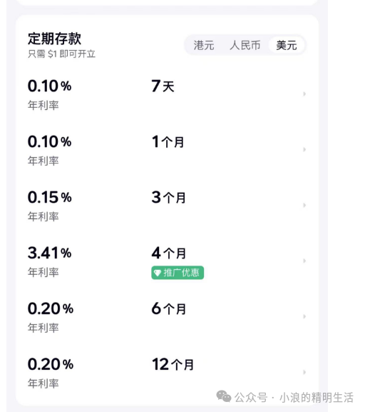 刚才看到的是港币存款优惠,这边美元也是有的。