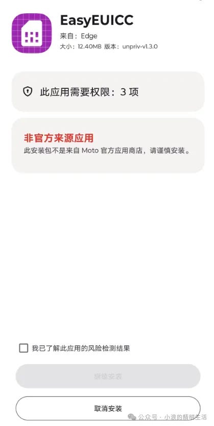 首先第一步,需要安装一个程序,EasyEUICC这个Apk文件,商家会提供教程的,其实教程我没仔细看。