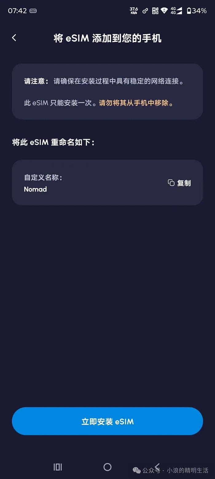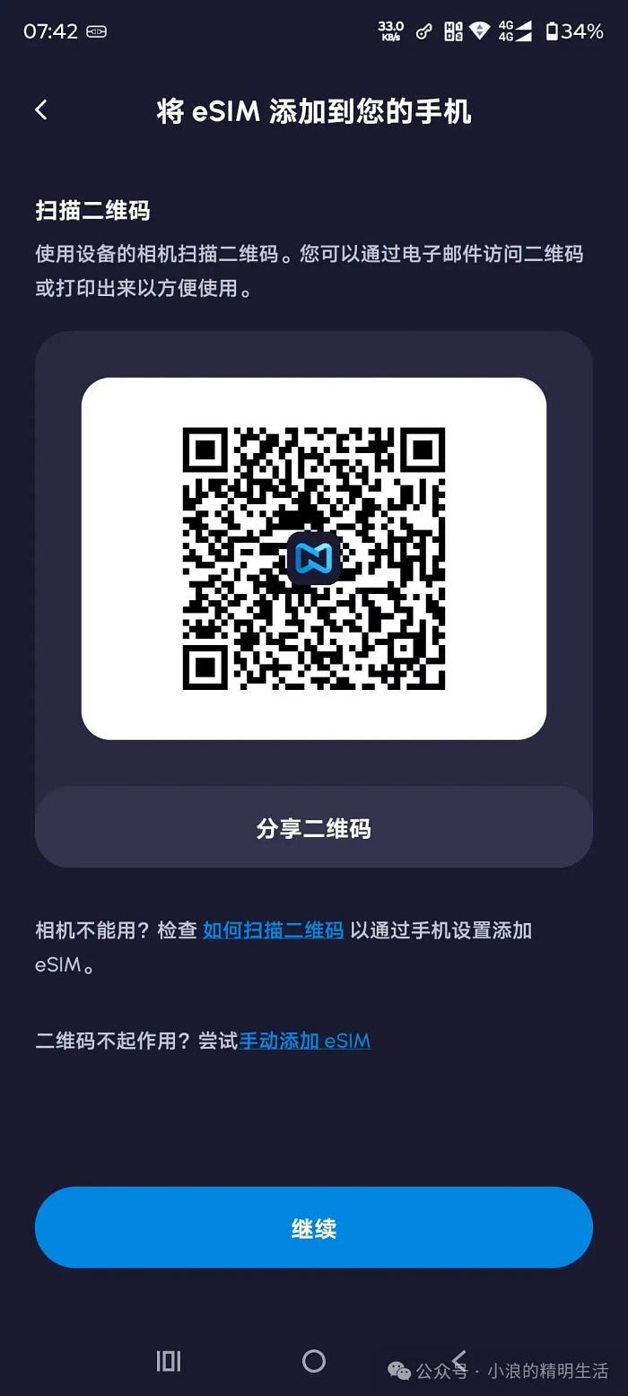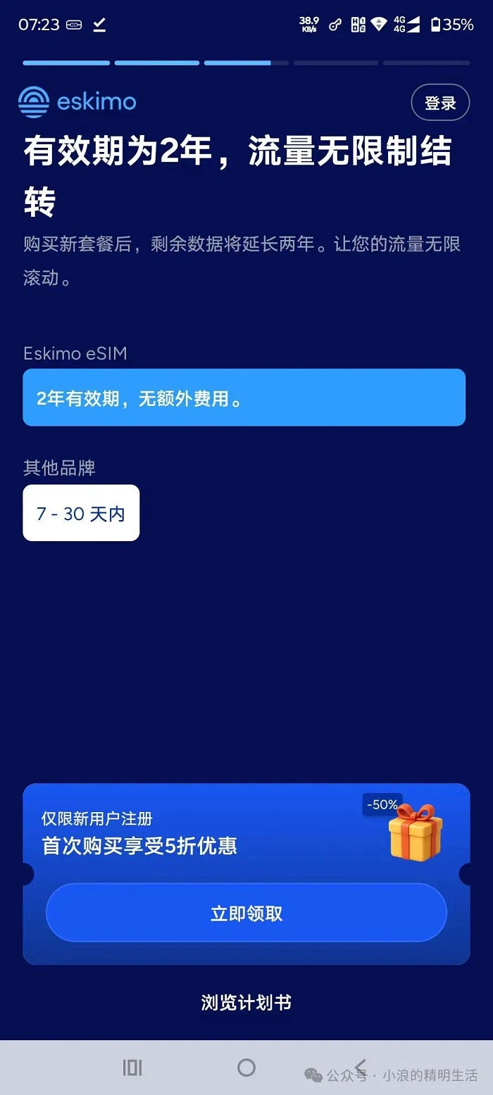 我原本是想安装eskimo这家的eSIM,本身注册是免费的,而且可以领取500MB的流量,有效期是2年,这个多好,而且这个500MB的流量是全球流量。
