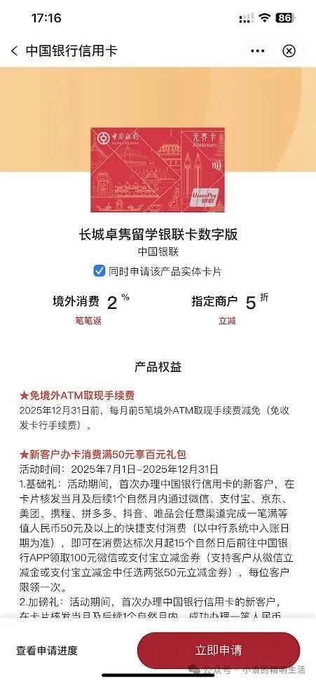 卡片审核非常快,由于我本身就有中国银行的信用卡,基本上1分钟就下卡。