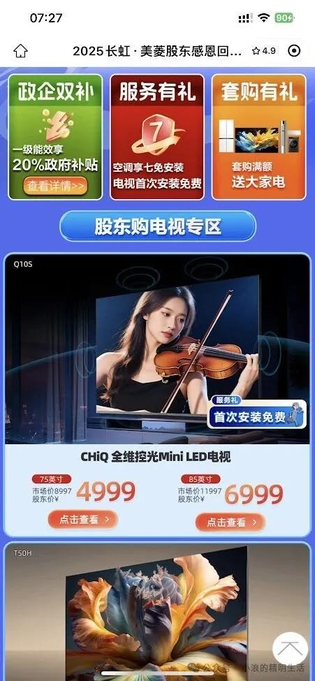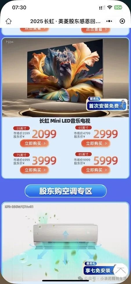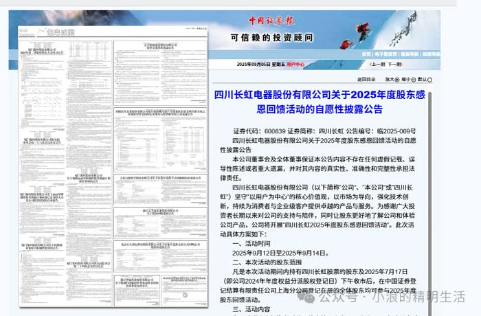 四川长虹的股东福利来了