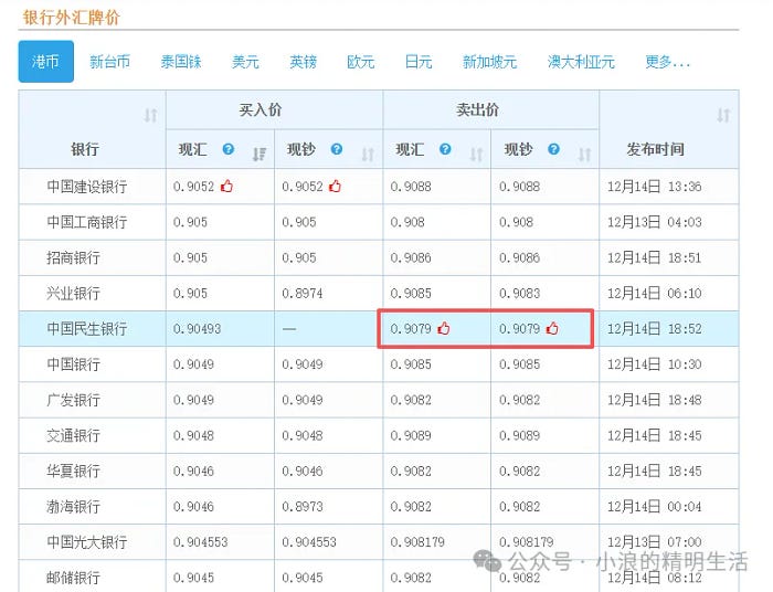 意味着,原本我这26.74港币,能去银行换24.2,但是我走消费只能当成24块,损失了2毛。