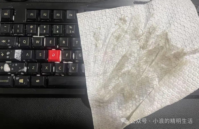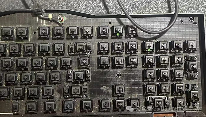 3.拆开键盘清灰,其实坏哪个你就修哪个,我是死马当活马医,所以我直接一次性全部拆了!