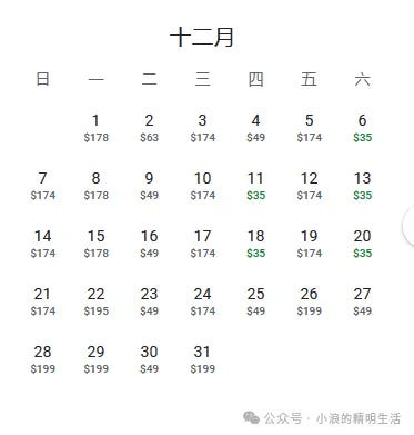 回程12月有35美元的。