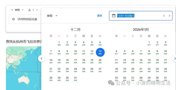 41美元,从杭州飞济州岛大量有票,日期也挺友好的,1月31日都有31美元的,适合带家庭出行。