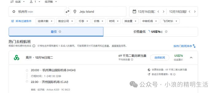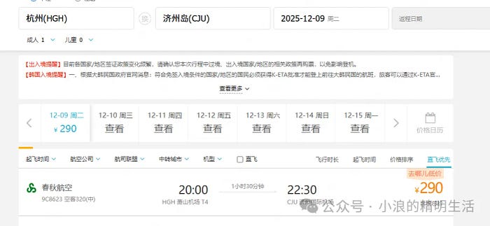 另外,上海飞济州岛的去程价格没有杭州的好,但是从济州岛回上海,那特价票很多。
