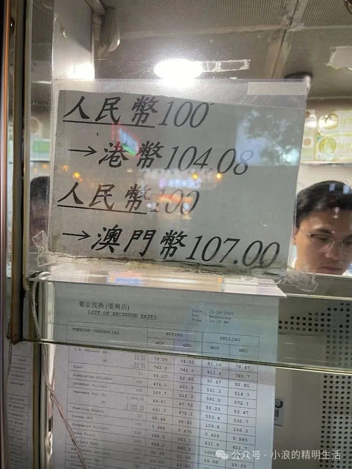 只是想提醒一点,澳门这种换钱所,都是以港币作为本币的。