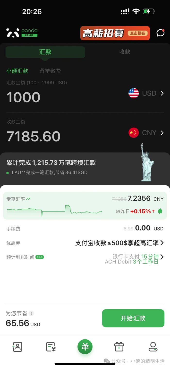 因为熊猫速汇是从汇率差价来赚取收入的,所以你上面2个刚好可以分别用一下。