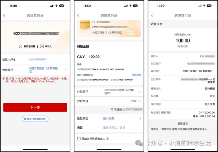 个人使用后,感觉跨境支付通为香港和内地两地来往频繁的小伙伴带来了真正的便利。(提示:在进行向内地转账前,请提前和向内地收款行确认收款账户可以接收跨境资金,例如特别是内地信用卡、二类/三类账户及收款电话号码,请确认后再进行转账操作。)