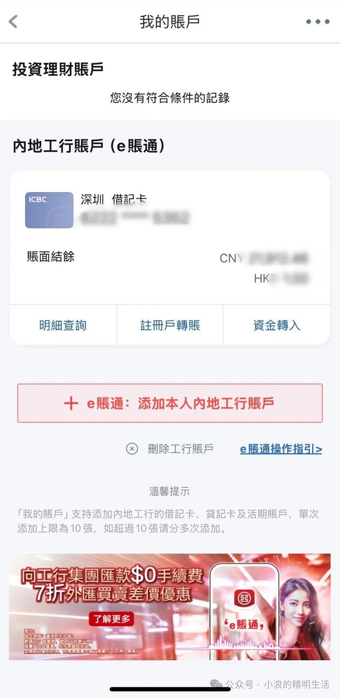 还是在工银亚洲App,刚刚操作流程中也透露了部分e账通内容。