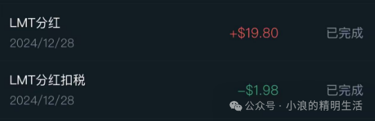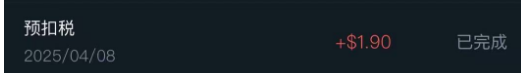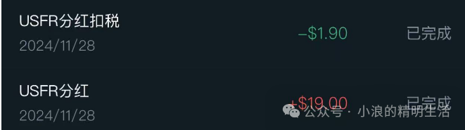 又例如这一笔USFR,分红19刀,扣税1.9美金。