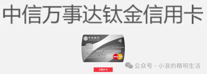 这边推荐再办一张中信银行的单标Master卡,万事达卡,其实套卡也无所谓,反正套卡也是给你是万事达单标卡。