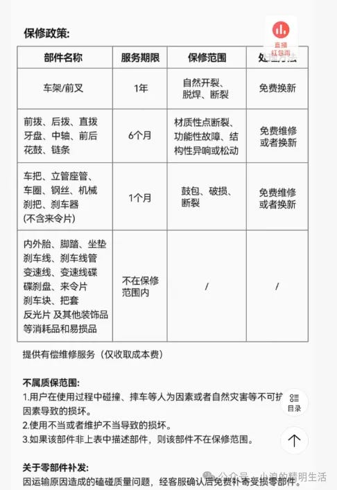 这里还有一个对比,那就是如上图,这个是京东京造自行车的质保期限。